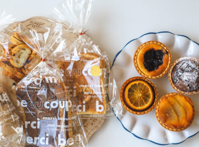 定番の菓子パンや具材がいっぱい詰まった惣菜パン、いろんなパンの種類が入ったラスク、チョコやナッツがたっぷりのメロンパンなど、他にはない魅力的な品揃えをご用意しています。おやつや軽食として、またはちょっとした贈り物としてもぴったりです。